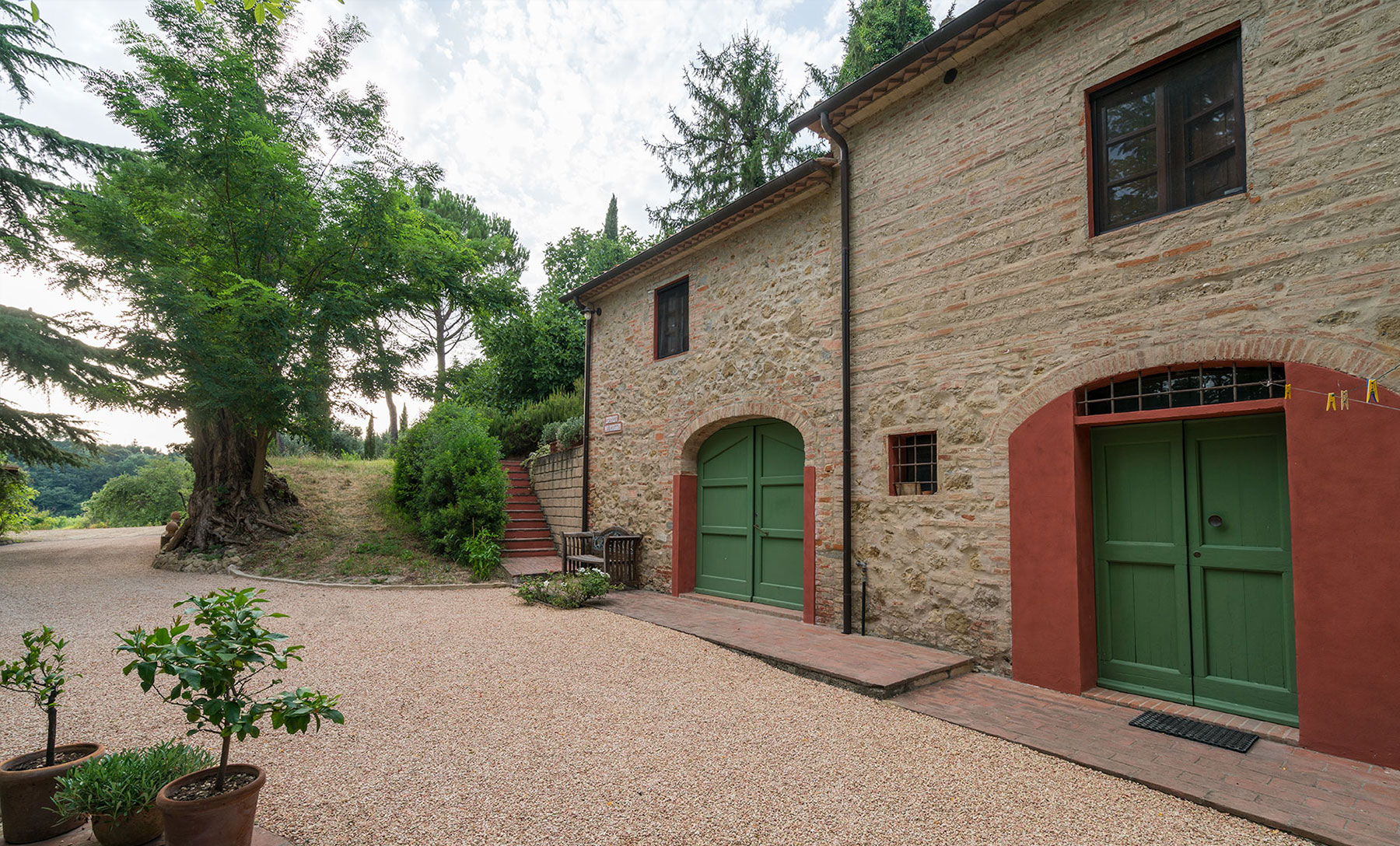 Das langgestreckt in den Hügel eingebettete Haus besitzt zwei voneinander unabhängige Wohnungen, von denen eine zeitweise ausschließlich privat genutzt wird. Eine große Terrasse, uneinsehbar von der zweiten Wohnung aus, steht ausschließlich den Gästen des Apartments Limone zur Verfügung. Die friedvolle Stille, das unvergleichliche Panorama, das Zirpen der Zikaden, der Gesang der Nachtigall und in den Frühsommermonaten auch das Leuchten der Glühwürmchen lässt sich von hier aus besonders entspannt genießen. Apartment Limone ist sehr komfortabel und mit liebevollen Details ausgestattet – auch eine Klimaanlage sorgt in den heißen Sommermonaten für die Bequemlichkeit unserer Gäste. Ansonsten ist die Ausstattung stilsicher dem urwüchsigen Charakter des über 100 Jahre alten bäuerlichen Anwesens angepasst.
