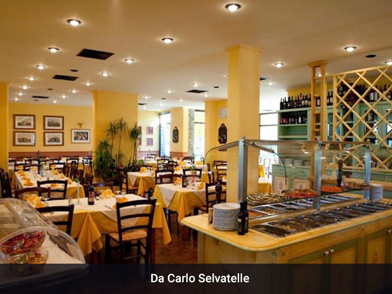 - Da Carlo in Selvatelle ist unser bevorzugtes Fischlokal. Hier gibt es immer frischen Fisch, aber natürlich auch Pizza, Pasta und Fleischgerichte! Etwa 12 km entfernt. In Richtung Montefoscoli, geradeaus weiter in Richtung Forcoli, nach rechts abbiegen auf die Hauptstraße, anschließend links ab in Richtung Peccioli/Capannoli über den ersten Kreisel (2. Ausfahrt) hinweg und weiter geradeaus, nach dem 2. Kreisel links (3. Abfahrt), dann nach ca. 1 km am Ortseingang Selvatelle sehen sie gleich links das Restaurant vor sich liegen. Via Volterranea 5, 56030 Selvatelle, Tel. +39 0587 653140 (Mittwochs geschlossen)