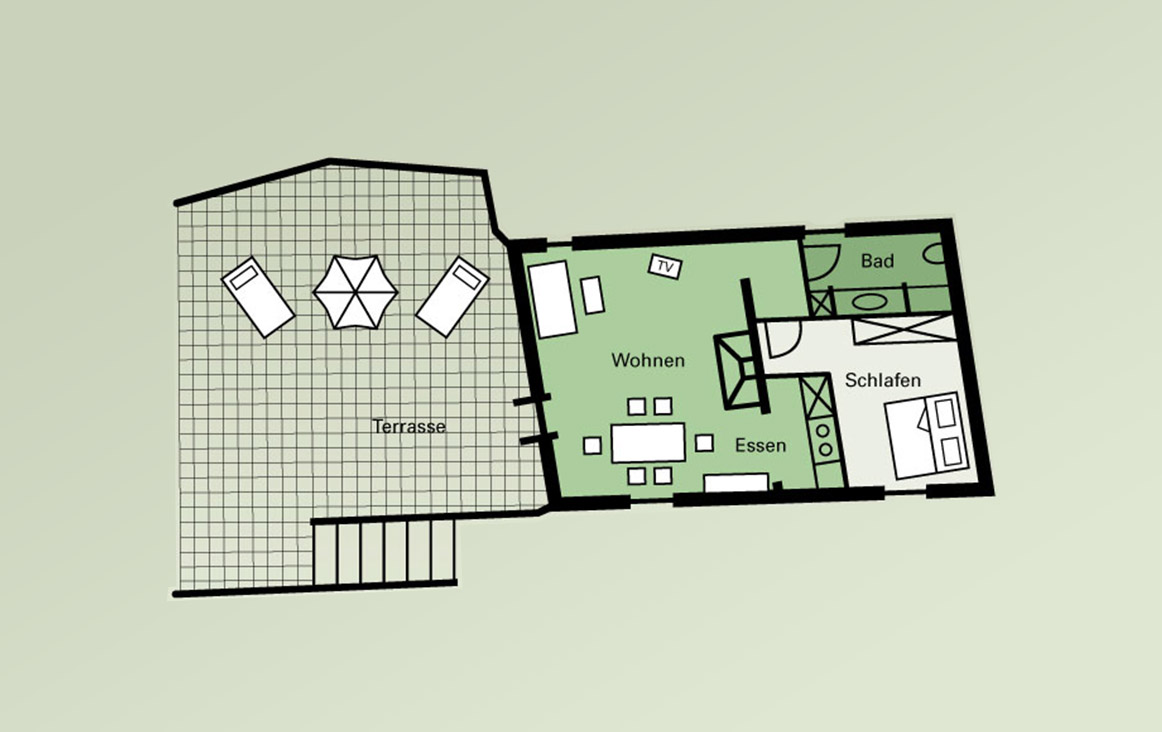 Klein, aber fein! Auf 56 qm findet man alles, was für einen gemütlichen Aufenthalt und entspannten Urlaub nötig ist. Die Küche bietet auch Hobbyköchen, die abends lieber selbst kochen und auf der eigenen Terrasse essen möchten, eine sehr gute Ausstattung. Im Badezimmer sorgen großzügige Ablageflächen dafür, dass auch wohlgefüllte Beauty-Cases ausreichend Platz haben und Schlafen ist bei dieser himmlischen Ruhe ja sowieso ein Genuss. Wir haben das Apartment so eingerichtet, als ob wir gerne selbst dort wohnen würden. Fühlen Sie sich also ganz zu Hause.